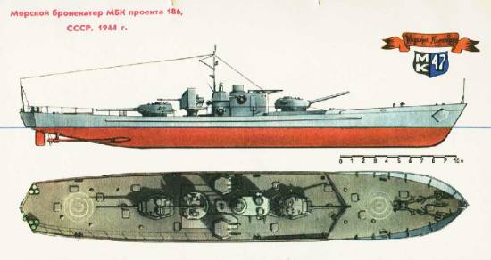 Obrněný člun MBK projekt 186 - dvouvěžový, používaný také v příbřežních mořích