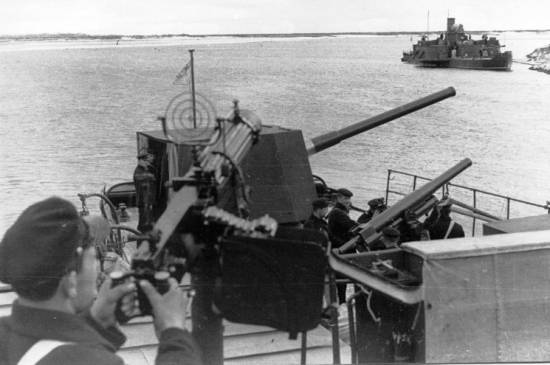 - samohybná plovoucí baterie (2 výsadkové čluny, každý s námořním dělem ráže 100 mm).