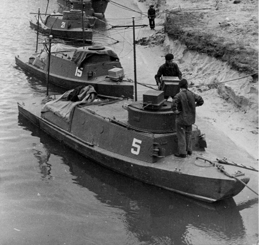 Plavidla nalezená při postupu po Pripjati byla postupně vyzvednuta a odeslána do loděnic v Kyjevě. Na jejich vyzvednutí se významně podílela také skupina civilních pracovníků specializované firmy EPRON, která pracovala pro sovětské NKVD, tedy ministerstvo vnitra. Jejich specializované vybavení - kompresory, nafukovací čluny, silná čerpadla, pracovní plošiny pro potápěče, plováky, čluny s jeřáby a další zařízení - sehrálo často rozhodující roli. Následovalo přezbrojení lodí na sovětské podmínky, nezbytné drobné opravy a také to nejdůležitější, alespoň podle názoru jejich nových majitelů - přejmenování.