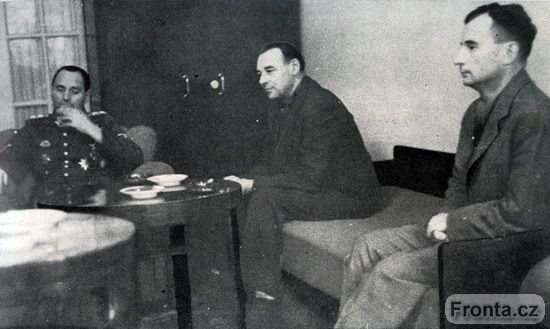 SS-Obergruppenführer Hermann Höfle vyslýchá zajaté čs. generály R. Viesta a J. Goliana