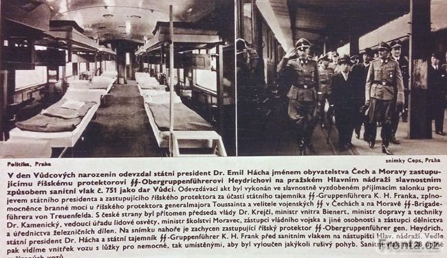 Předání se účastnili i státní tajemník SS-Gruppenführer K. H. Frank, zmocněnec Wehrmachtu u říšského protektora genmjr. Rudolf Toussaint, velitel Waffen-SS v Čechách a na Moravě SS-Brigadeführer Karl von Treuenfeld, velitel bezpečnostní policie a SD v protektorátu SS-Standartenführer Horst Böhme, předseda protektorátní vlády dr. Jaroslav Krejčí, ministr dopravy dr. Jindřich Kamenický, ministr vnitra dr. Richard Bienert, ministr školství a lidové osvěty Emanuel Moravec a další představitelé různých českých a německých úřadů.