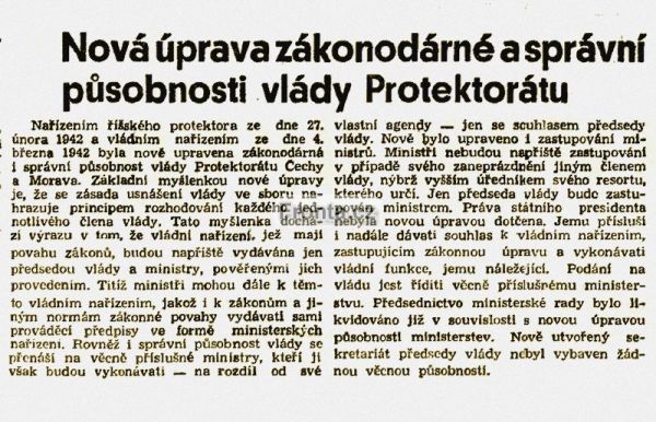 Prezident Hácha jmenoval novou protektorátní vládu pod vedením JUDr. Jaroslava Krejčího, který současně, stejně jako v předchozí Eliášově vládě zastával i post mistra spravedlnosti (a po Eliášově zatčení řídil vládu). Do vlády byl „nasazen“ i Němec — ministr hospodářství a práce Walter Bertsch a smutně proslulý kolaborant Emanuel Moravec jako ministr školství a národní osvěty. Několik ministerstev a také Předsednictvo ministerské rady bylo zrušeno.