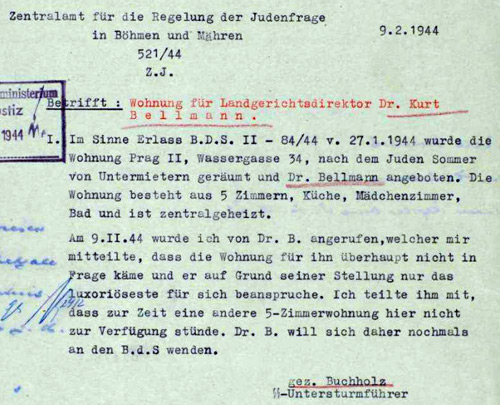 Soudce Kurt Bellmann u centrály spravující židovský majetek žádá „luxusnější“ byt