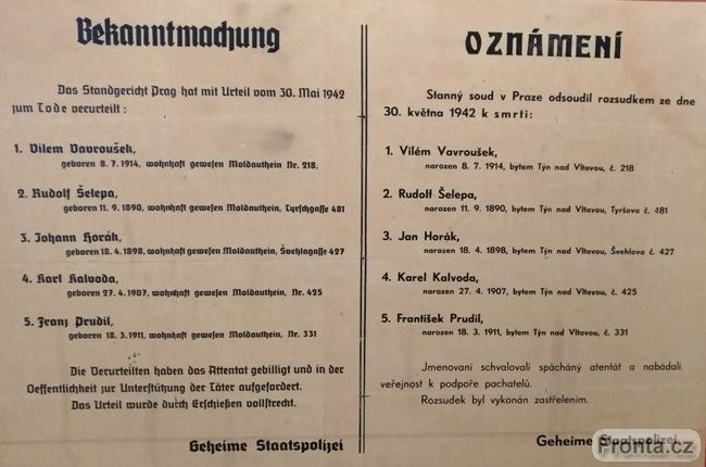 Popravy na příkaz velitele budějovické služebny gestapa krim. komisaře Adolfa Fuchse (1909-?) prováděl krim. asistent Willi Hempf (1914-?) ranou do týla. Těla byla poté odvezena ke kremaci. Za tento způsob poprav přímo v budově gestapa dostal A. Fuchs důtku a další odsouzení již byli posíláni k popravám na střelnice do Klatov nebo Tábora.