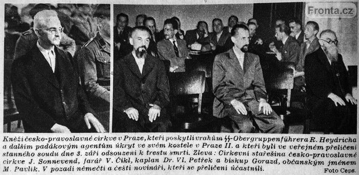 Biskup pravoslavné církve Gorazd (obč. jménem Matěj Pavlík, nar. 26. 5. 1879), předseda sboru starších pravoslavné církve v Praze Jan Sonnevend (nar. 25. 12. 1880), kaplan pravoslavné církve dr. Vladimír Petřek (nar. 19. 6. 1908) a farář pravoslavné církve Václav Čikl (nar. 13. 1. 1900) byli odsouzeni k trestu smrti.