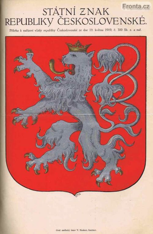Dočasný státní znak republiky Československé. Sbírka zákonů a nařízení 1918-1919, str. 401.