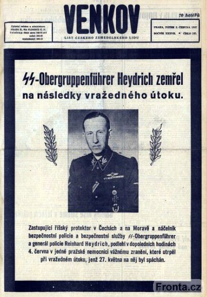 Dne 4. června 1942 ve 4.30 ráno zastupující říšský protektor Reinhard Heydrich umírá v pražské nemocnici Na Bulovce na otravu krve.