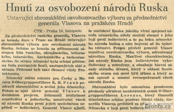Přeji vám, pane generále Vlasove, a vašemu hnutí, aby v zájmu velké věci bylo korunováno úspěchem. Pražské porady buďtež k tomu šťastným začátkem!