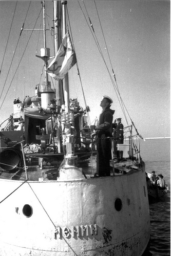 Dělový člun LENIN Kaspické flotily vztyčuje vlajku - 1943