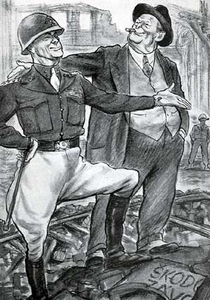 Americký kapitalista si libuje nad rozbombardovanou Škodovkou - bude o jednu konkurenci méně:
