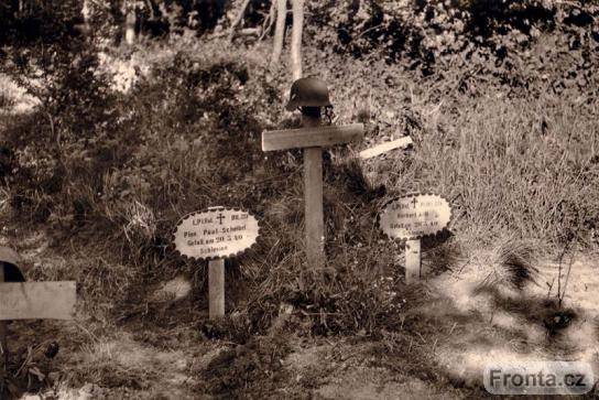 Květen 1940 - Mormalský les, Francie. Hroby kamarádů padlých 20. května 1940 - ženisté Paul Scheibel (38 let) a Herbert Arlt (24 let).