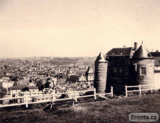 Červen 1940 - Dieppe, Francie. V popředí zámek Dieppe (Château de Dieppe), v pozadí je vidět kostel svatého Jakuba (Église Saint-Jacques).