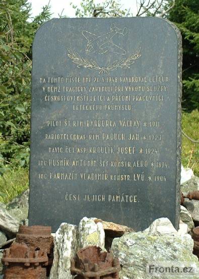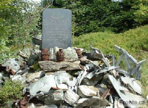 Samotný památník najdete po dalším kilometru a půl, po krátkém prodírání houštím, na konci úzké zarostlé pěšiny, ztracené v nízké kosodřevině. Na malém palouku je navršena kamenná mohyla, v ní je zasazena pamětní deska a okolo dodnes leží část trosek rozbitého stroje. Na tomto místě dne 20. srpna 1948 tragicky havaroval dvoumotorový letoun C-103 od 1. dopravního leteckého pluku s pěti muži na palubě. Byl mezi nimi i slavný československý předválečný letecký konstruktér inženýr Antonín Husník, kterému je věnován následující článek. Dalšími oběťmi této letecké katastrofy byli: inženýr Vladimír Karmazín, známý a vynikající odborník na letecké motory, autor mnoha článků v dobovém leteckém tisku a jeden ze zakladatelů tehdejšího Technického muzea, dále pilot letadla štábní rotmistr Václav Barborka, radiotelegrafista rotmistr Jan Padouch a navigátor četař aspirant Josef Kroulík.