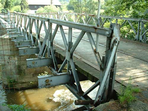 Most konstrukce Bailey přes Ohři - Lužec nad Vltavou, zesílení stávajícího ocelového mostu pomocí nosníků Bailey