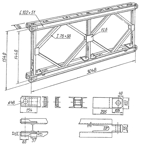 Konstrukce těchto mostů je dobře promyšlená. Základem je svařovaný konstrukční prvek o rozměrech cca 3150x1550x180 mm a hmotnosti okolo 260 kg (viz převzatá ilustrace). Používá se na vodorovné nosníky a teoreticky zřejmě i svislé konstrukce pilířů. Prvek je svařovaný z ocelových profilů a plechových dílců pevnostní řady "52" (mez pevnosti v tahu 520 MPa, to je zatížení cca 52 kg na 1 mm2 průřezu). Horní a dolní pás tvoří dvojice profilů U 4" x 2" (101,6 x 50,8 mm, zhruba naše U 100) otočených stojinami k sobě. Svislice a šikmé zavětrování jsou z profilu I 3" x 1,5" (76,2 x 38,1 mm, zhruba naše I 80), výztuhy na spojích jsou z plechu tloušťky 1/4" (6,35 mm). Tyto prvky se spojují čepy o průměru 48 mm (to kupodivu neodpovídá žádné palcové míře) narážených buď do zesílených konců horních a dolních pásů pro vodorovné napojení, nebo do příčných výztuh mezi pásy pro vertikální napojení těchto prvků.