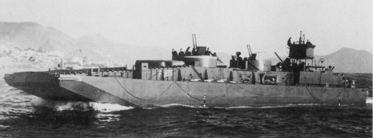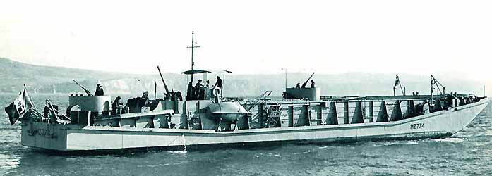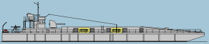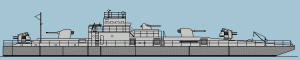 Jedna z verzí italských prámů MZ, kde je dobře viditelná betonová prstencová ochrana PL zbraní proti střepinám a charakteristické vybavení - dva kotvové jeřáby na přídi, patentní kotvy na zádi a otevřená kormidelna - zdroj http://xoomer.virgilio.it/ramius/Militaria/unita_da_sbarco.html