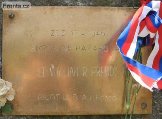 Fotografie pomníku 1st/Lt. Williama R. Preddyho z 339th FG, který se nachází nedaleko Záluží (okres Český Krumlov). Povšimněte si chybného označení: US Air Force - správně má být US Army Air Forces.