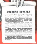 Já, občan Svazu sovětských socialistických republik, vstupujíce do řad Dělnicko-rolnické Rudé armády skládám přísahu a slavnostně se zavazuji být čestným, statečným, disciplinovaným, ostražitým vojákem, přísně chránit vojenská a státní tajemství, bezvýhradně se řídit všemi vojenskými řády a plnit rozkazy velitelů a náčelníků.