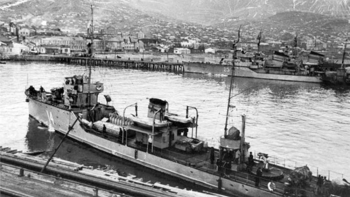 Minolovka třídy ŠČIT T-14 na novorossijské základně roku 1942, původní značení měla T-404