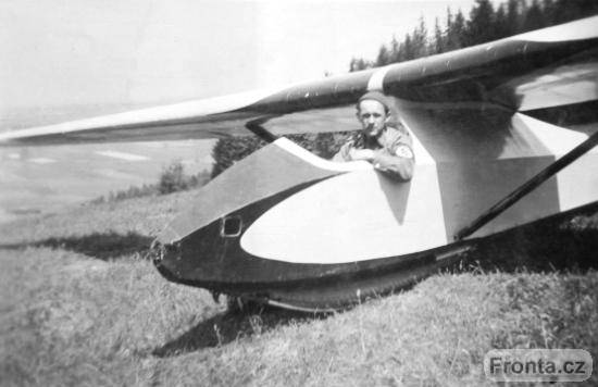 Jaro/léto 1940, Golleschau. Rudolf Gaura v původně polském větroni "KOMAR".