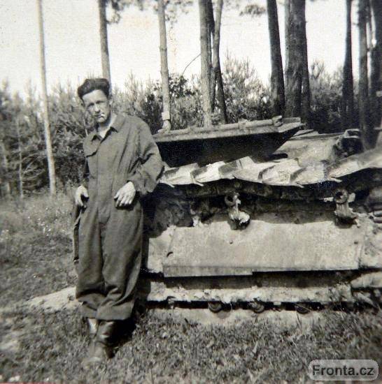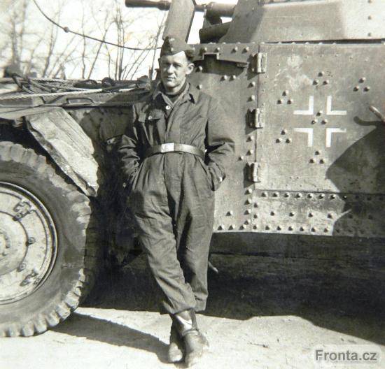 Podzim 1941, Kalinin (Калинин). Rudolf Gaura u kořistního francouzského obrněného vozu Panhard TOE.