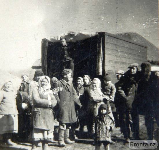 Podzim 1942, okolí města Kirovograd. Rudolf Gaura na korbě nákladního automobilu v ukrajinské vesnici.