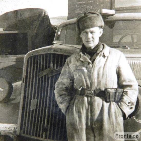 Zima 1942/43, okolí města Kirovograd. Rudolf Gaura u nákladního automobilu Opel Blitz.