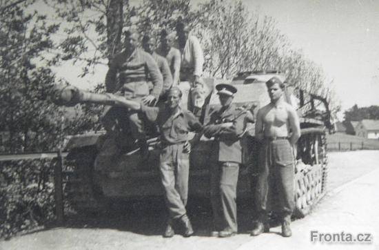 Léto 1946, Čechy. Vojáci u původně německého samohybného děla StuG III Ausf. G. Tato děla byla v roce 1946 zařazena do čs. armády pod označením samohybný protitankový kanón vz. 40 N (ShPTK 40 N).