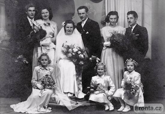 9. listopad 1946, Návsí u Jablunkova. Svatební fotografie Rudolfa Gaury a Emilie Sabelové.