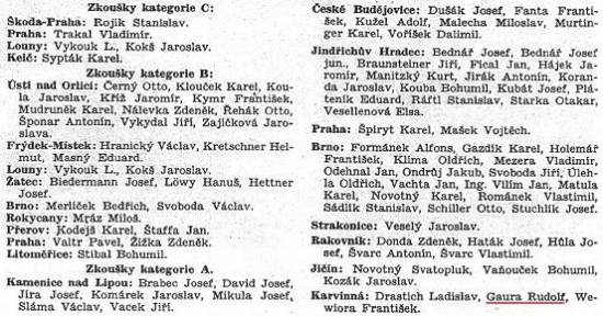 Srpnové vydání časopisu Letectví, ročník 1938, oznamuje jména absolventů plachtařských zkoušek.