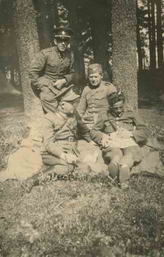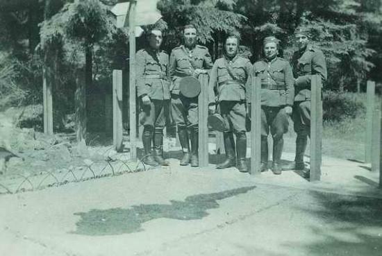 Fotografie SOSáků z Kunštátu v Orlických horách byla pořízena v červenci 1938. Na snímku jsou tři příslušníci finanční stráže a jeden četník (vpravo vzadu)