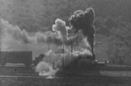 Právě zasažená lokomotiva jedním ze stíhačů 8. letecké armády (Foto: NARA)