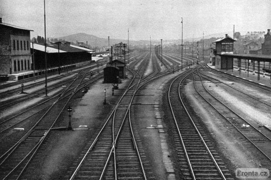 Zcela opuštěné nádraží v Liberci (Reichenberg) v říjnu 1938 po mnichovské dohodě. Veškerý vozový park byl odvezen do vnitrozemí.