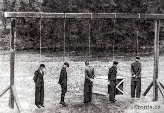 Dne 3. září 1943 po 15. hodině bylo těchto pět vybraných mužů - Zdeněk Žáček, Bohumil Janáček, Jan Ermis, Josef Lichnovský, Josef Drozd - poblíž místa činu oběšeno.