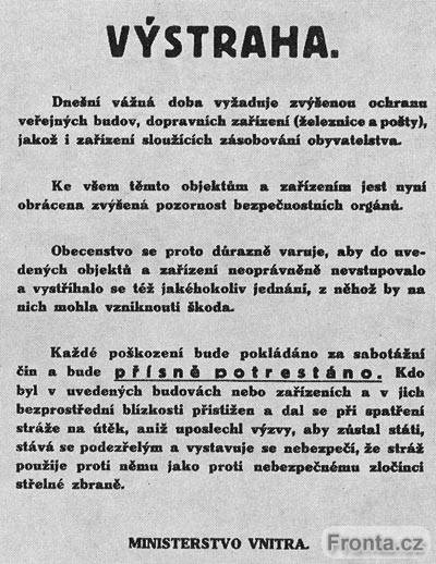 Výstraha protektorátního ministerstva vnitra z roku 1939
