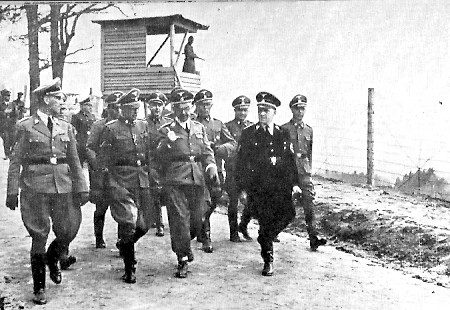 Vpředu: E.Kaltenbrunner, F.Ziereis, H.Himmler a v černé uniformě A.Eigruber, zcela vpravo G.Bachmayer.