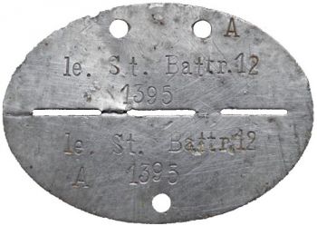 | Jednotka: | Stamm Batterie / leichte Artillerie Ersatz Abteilung 12 |