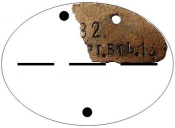 Část známky, která by mohla náležet jak 14. ženijnímu praporu (Pionier Bataillon 14), tak 14. rezervnímu ženijnímu praporu (Reserve Pionier Bataillon 14), 14. zeměbraneckému ženijnímu praporu (Landwehr Pionier Bataillon 14), 14. pevnostnímu ženijnímu praporu (Festungs Pionier Bataillon 14) nebo 14. zemskému stavebně-ženijnímu praporu (Landes Bau Pionier Bataillon 14).