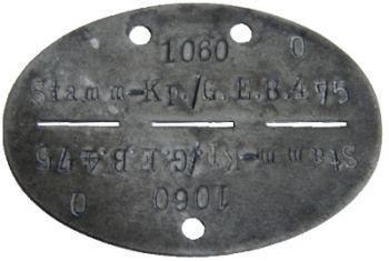 | Jednotka: | Stamm Kompanie / Grenadier Ersatz Bataillon 475 |