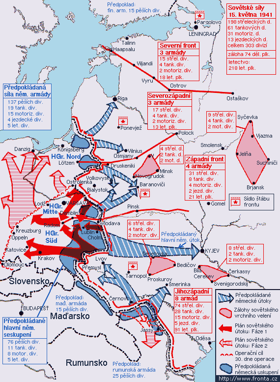 Žukov předpokládal, že Němci se svými spojenci můžou proti SSSR postavit celkem 240 divizí, z toho 19 tankových. Sovětské síly v květnu 1941 Žukov vyčisluje: